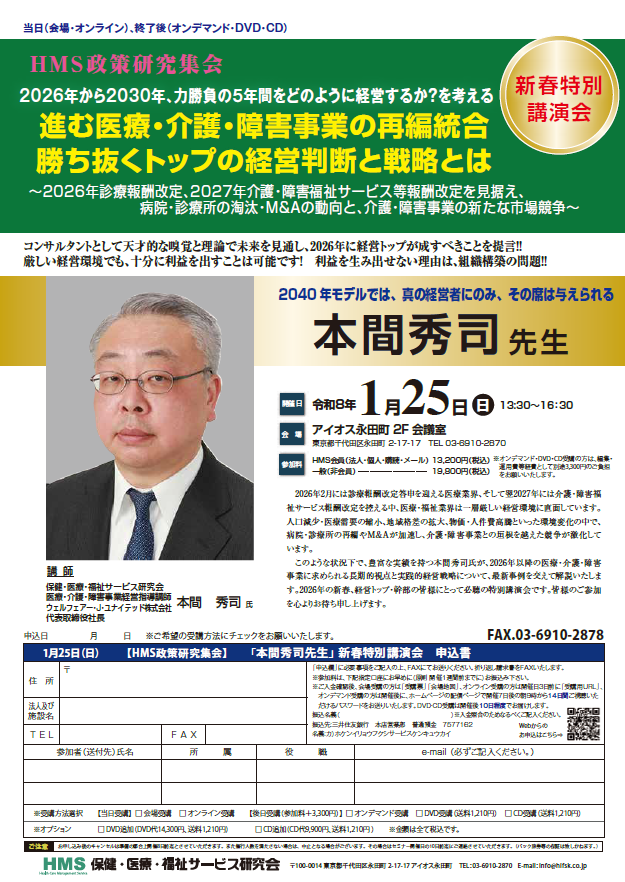 かなりの情報ソースがありますので、結構、予言は当たるのですよ。 calendar_today 2025年10月16日 ついに、勝負の10年間が始まりました。どのように戦うべきか、私の考えを聴きに来て下さい。 335日稼働。常在戦場。急患案件年10件。優秀な法人も知っている。自分も事業者(障がい)。医療・介護・障がい・就学前のコンサルティングをしている。厚労省の方ともパイプがないわけじゃない(笑)。コンサルタントが分野別20名いる。 かなりの情報ソースがありますので、結構、予言は当たるのですよ。 お待ちしてまーす。