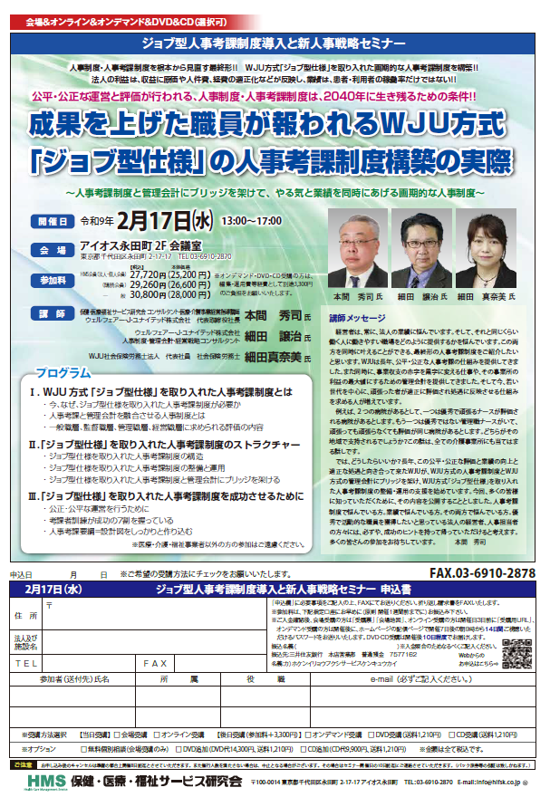 2027/2/17 HMSジョブ型人事考課制度導入と新人事戦略セミナー